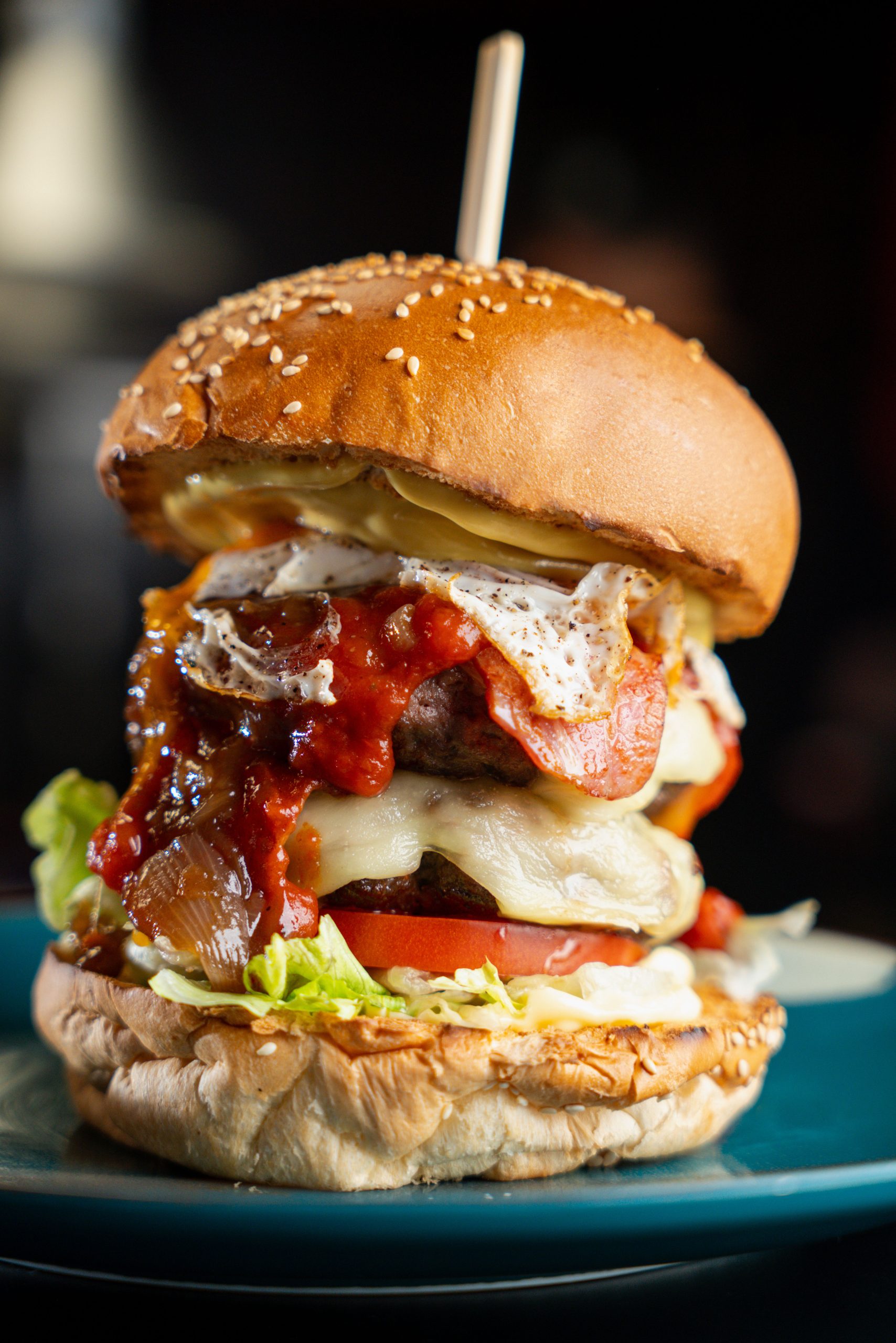 ΤΟΥ ΓΕΝΝΑΙΟΥ Τι περιέχει 2 μοσχαρίσια μπιφτέκια 2πλό edam 2πλό μπέικον Τηγανητό αβγό Ντομάτα Iceberg Καραμελωμένα κρεμμύδια Σπιτική κόκκινη σάλτσα Μουστάρδα Μαγιονέζα